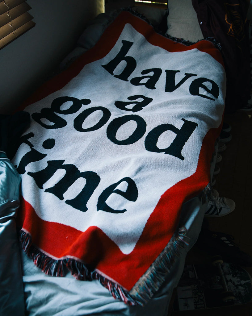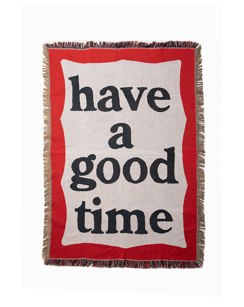 have a good timeより大判サイズのブランケットとなります。家や車、旅行、キャンプなど、幅広いシーンにて最適です。
