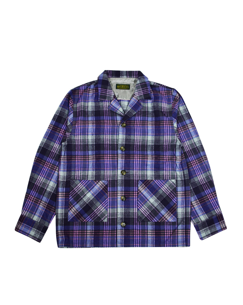 qurahsi-co Shaggy Check Shirts Jacket(purple)